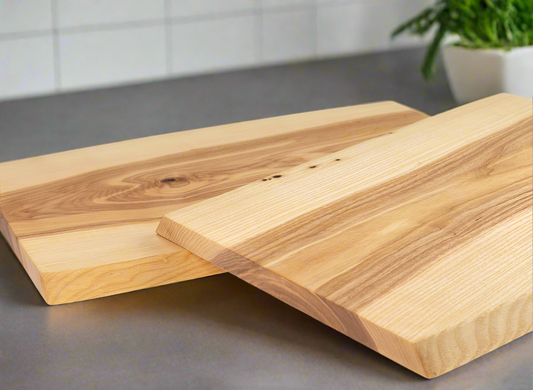 Holz Schneidebrett aus Kern Esche geölt mit Baumkante geschliffen 22mm dick 52 x 30-35 cm