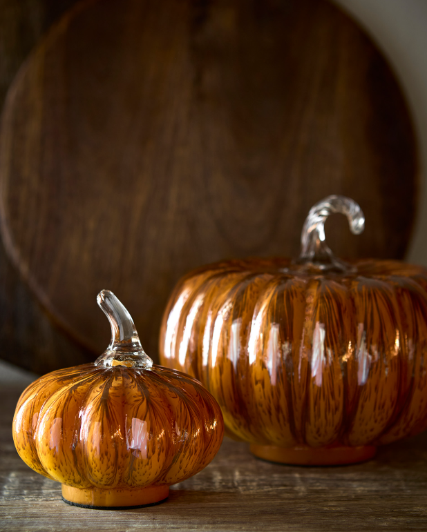 Mit diesem dekorativen Glas-Kürbis-Set sorgst du für Gemütlichkeit und stilvolle Akzente in der goldenen Jahreszeit.