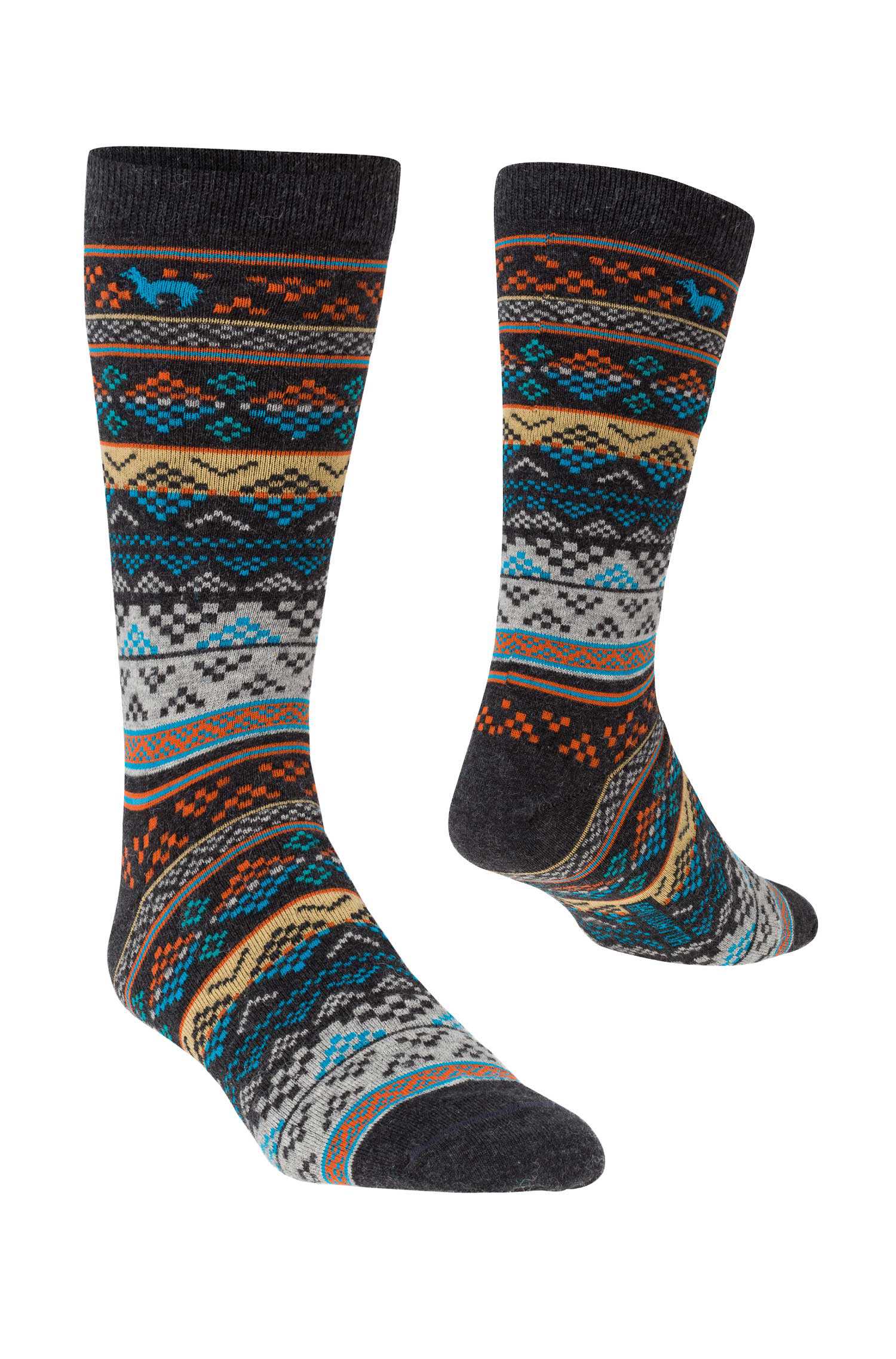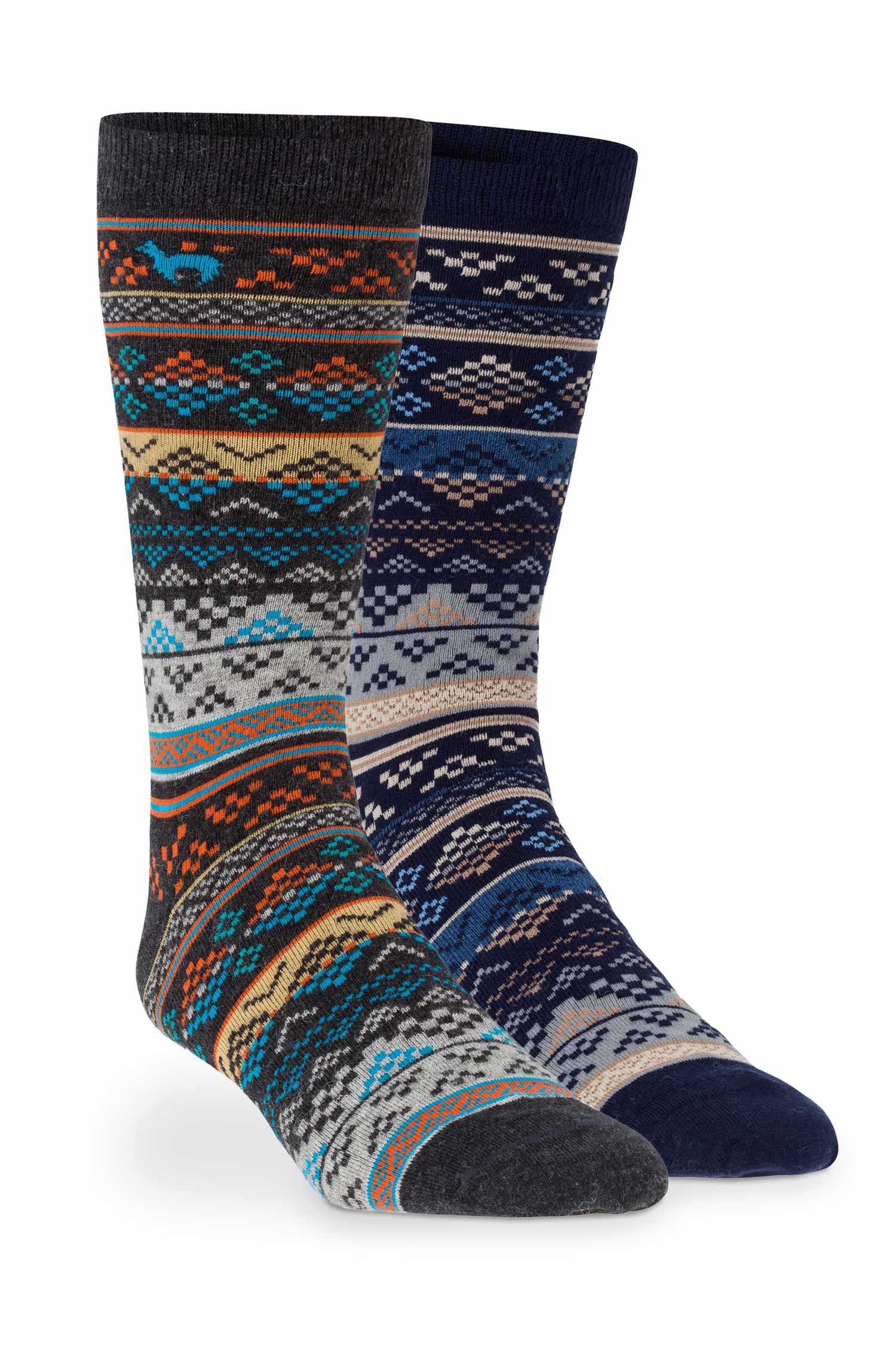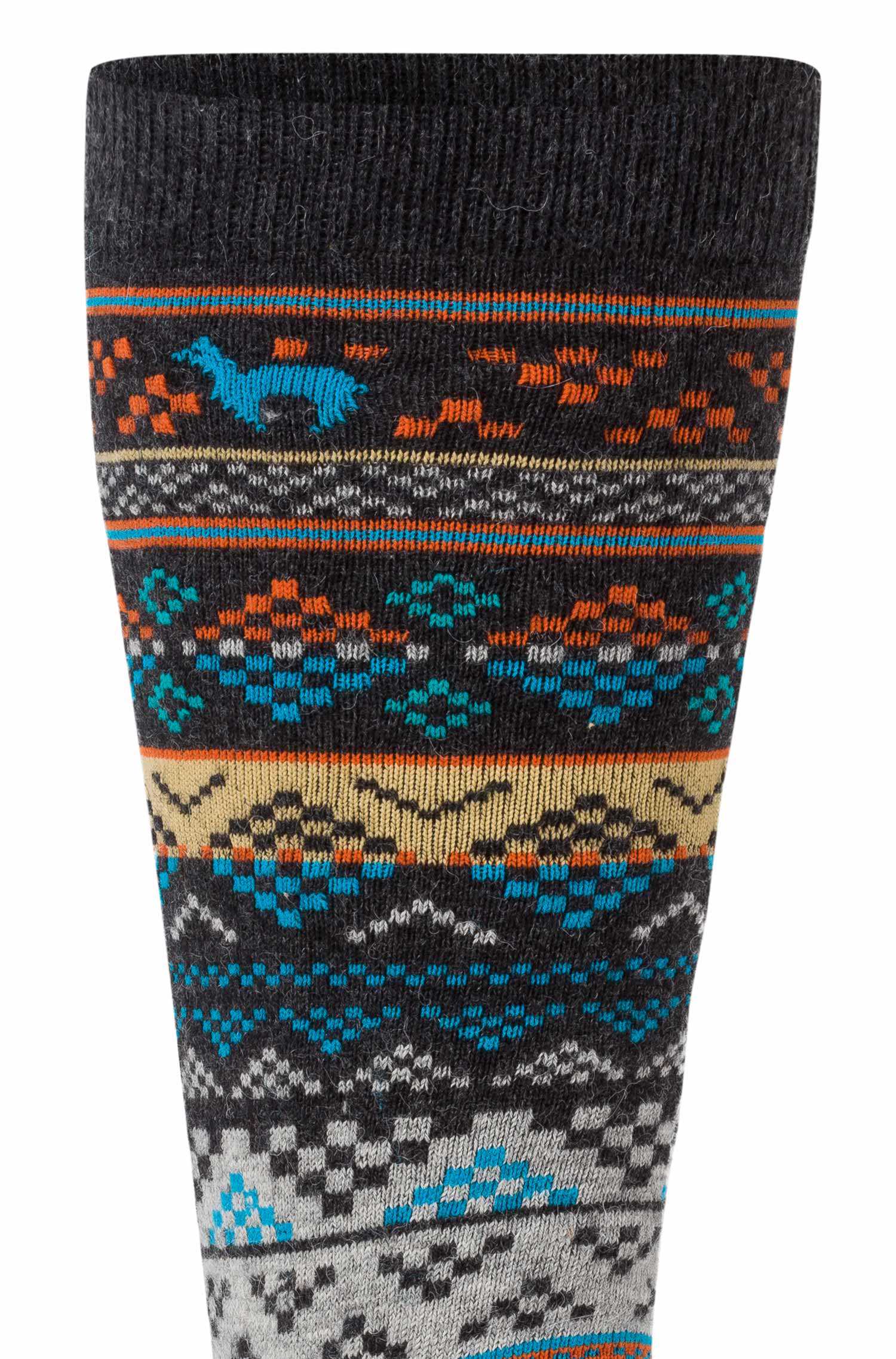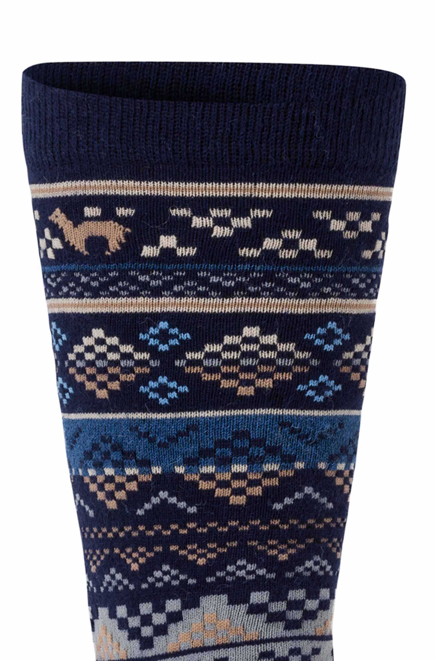 Beautifully coordinated colors combine in an intricate jacquard knit pattern. These calf-high socks feature an elasticated ribbed knit waistband for a secure fit and are made from 95% natural fibers: high-quality alpaca and long-fiber Pima cotton ensure comfort and durability.