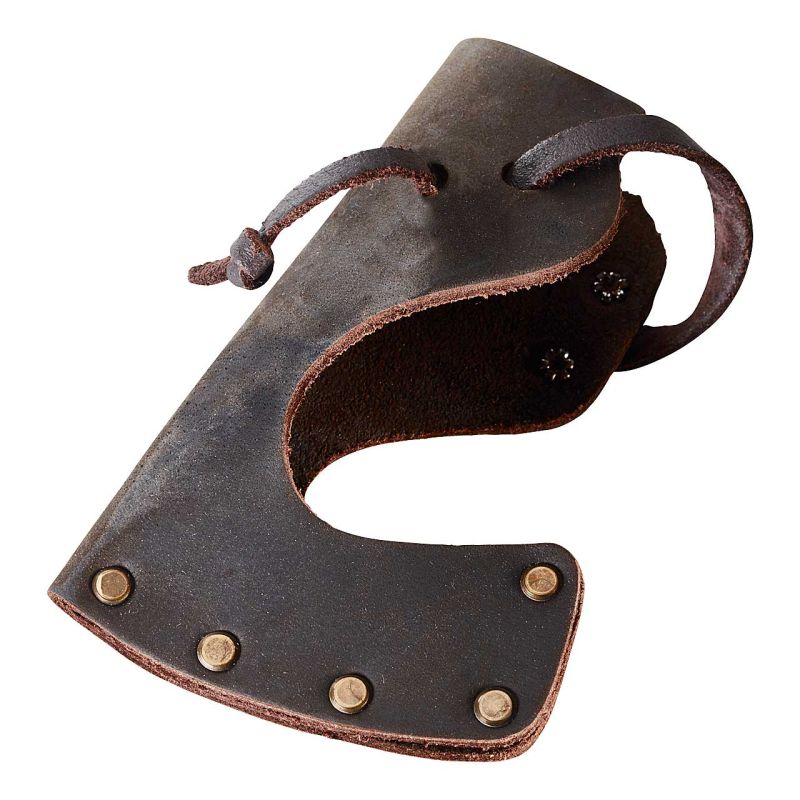 Der mit Leinöl behandelte Stiel aus amerikanischem Hickoryholz liegt angenehm in der Hand. Eine schön verarbeitete Kopfscheide aus braunem Leder sichert den Axtkopf beim Transport. Kopfgewicht 500 g.