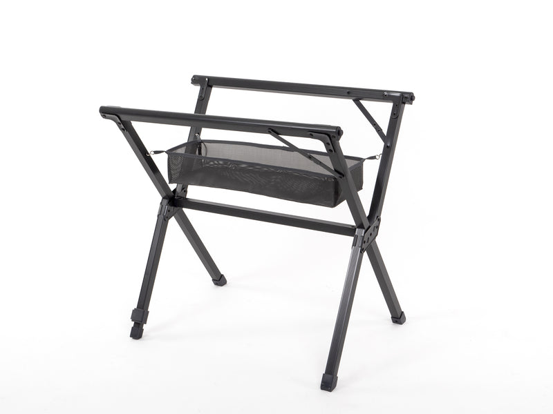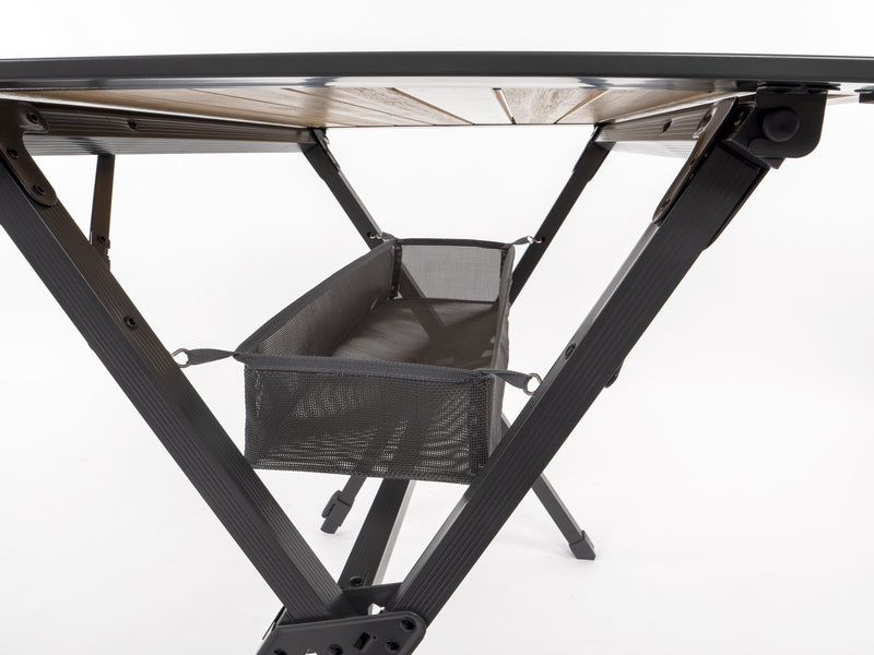 Dank der mitgelieferten Tragetasche lässt sich der Tisch im Handumdrehen zusammenpacken, transportieren oder platzsparend verstauen. Besonders praktisch: Das Aufbewahrungsnetz unter der Tischplatte bietet zusätzlichen Stauraum für Utensilien, Snacks oder persönliche Gegenstände.