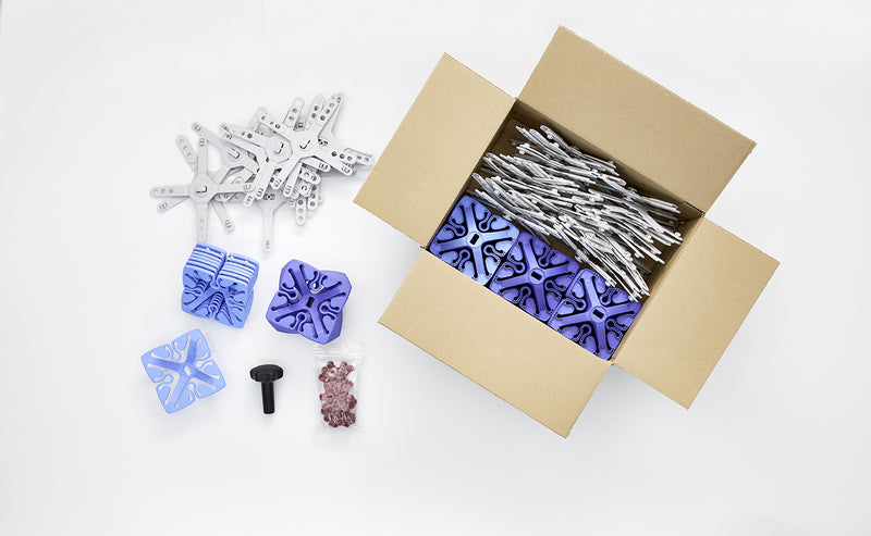 Das Grundpaket deckt Standardmaße ab, mit dem Erweiterungspaket lassen sich Sondergrößen einfach ergänzen. Durch wählbaren Lochabstand kann die Federwirkung auf das jeweilige Körpergewicht abgestimmt werden – für individuellen Liegekomfort auf kleinstem Raum.