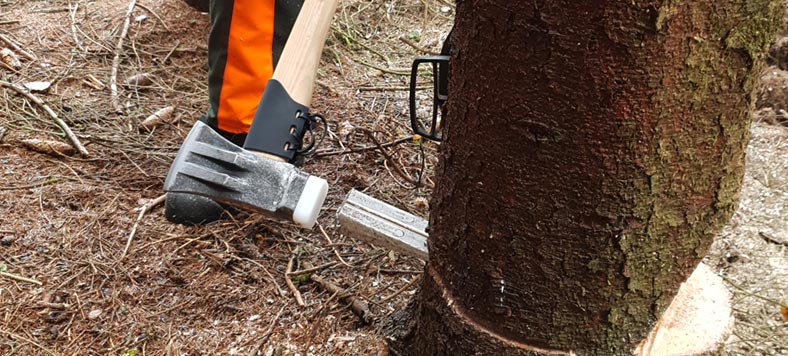 Die Spaltaxt für echte Forstarbeiten überzeugt mit Kraft, Sicherheit und Komfort. Dank der innovativen Polymer-Schlagfläche wird der Aufschlag beim Eintreiben von Fällkeilen effektiv gedämpft – das reduziert Vibrationen, mindert den Geräuschpegel und verringert das Risiko von Metallsplittern.