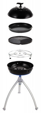 Dieser Grill mit GreenGrill-Keramikbeschichtung (Ø 38 cm) sorgt für gleichmäßige Wärmeverteilung, dank des Deflektors auf der Rückseite des Grillrostes. Inklusive 1 Topfständer, Paellapfanne, Deckel und praktischer Tragetasche ist er kompakt und gleichzeitig Vielseitig für unterwegs.