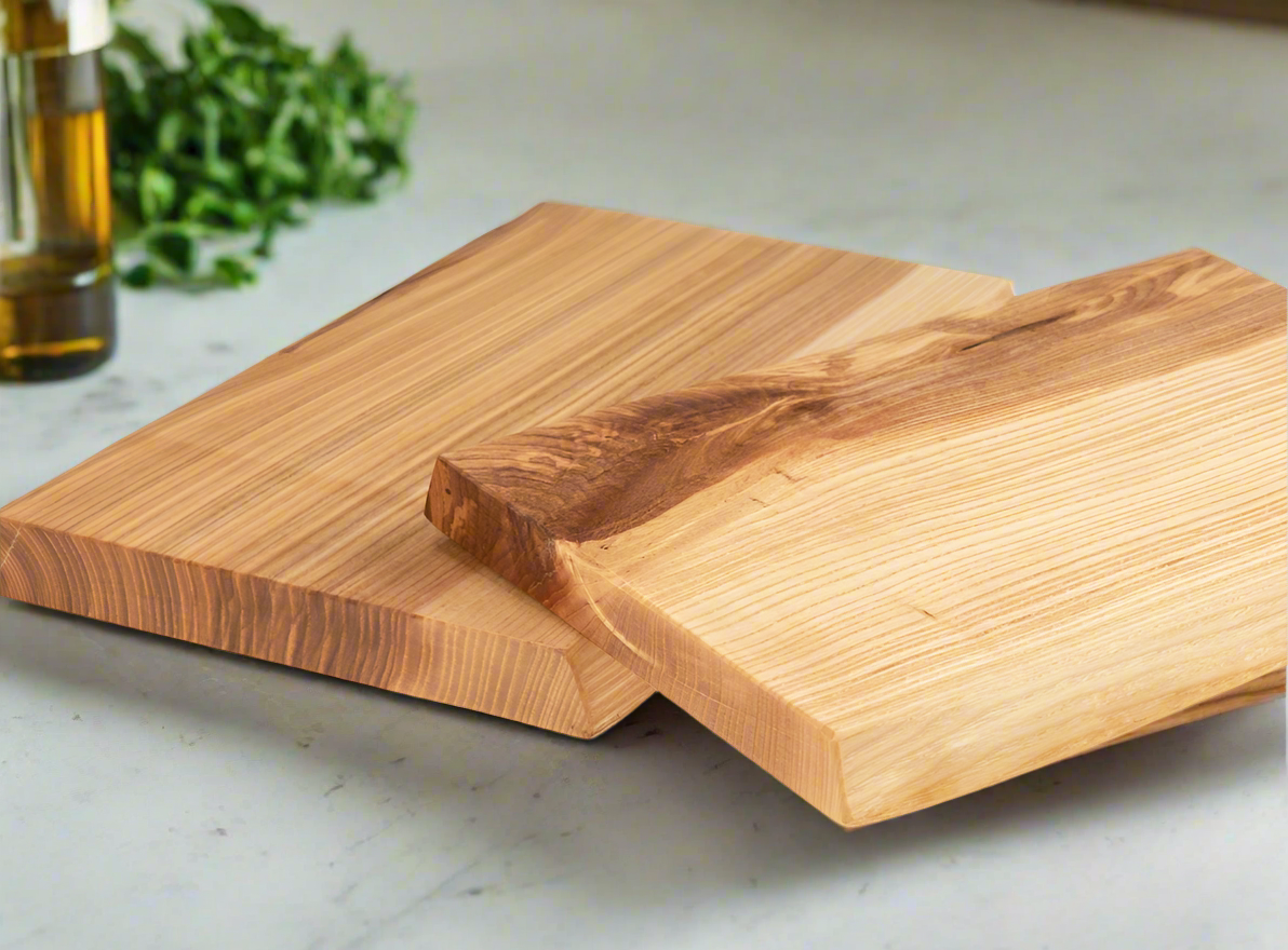 Holz Schneidebrett aus Kern Esche geölt mit Baumkante geschliffen 22mm dick 37 x 20-22 cm
