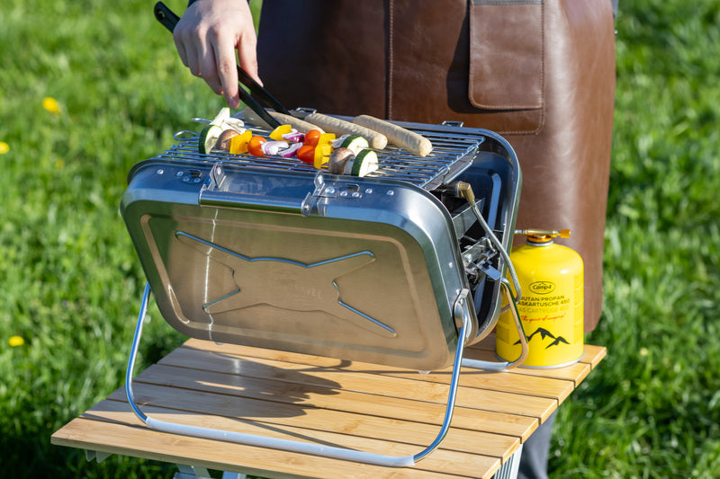 Der Klappgrill von Holiday Travel verbindet modernes Design mit praktischer Funktionalität. Gasbetrieben und mit Schraubkartusche ausgestattet, lässt sich der Grill schnell und einfach aufbauen sowie wieder zerlegen – ideal für flexibles Grillen unterwegs.