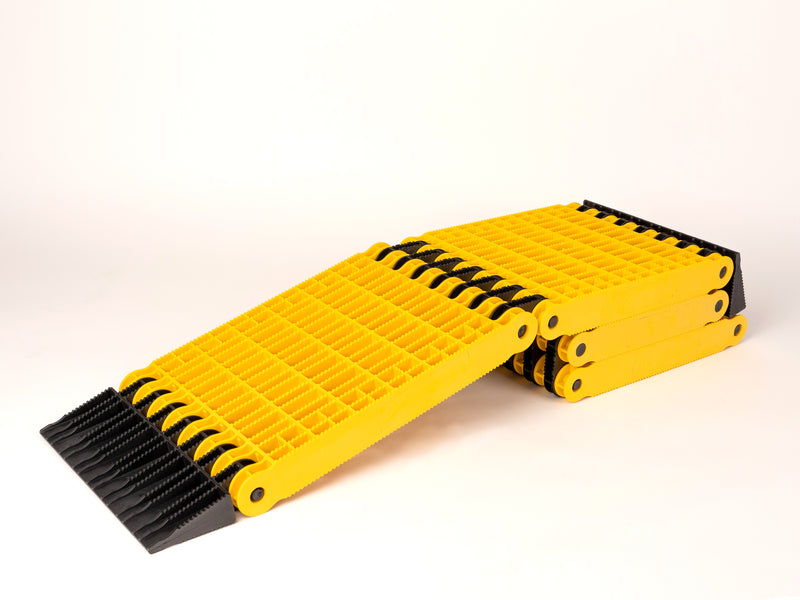 Glasfaserverstärkte Klapprampe mit rutschfester Oberfläche und Keilform – ideal für Camping, Wohnmobil, Offroad oder Werkstatt.